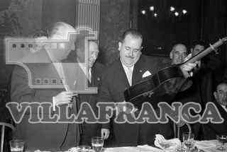 Cena del Ayuntamiento en el Salón de Recreo. Autoridades. Firma de una guitarra