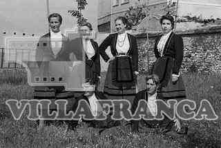 Mujeres con traje regional en el jardín del Instituto Cardenal López de Mendoza