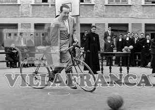 Fiesta antiguos alumnos del Liceo Castilla. Hombre en bicicleta jugando