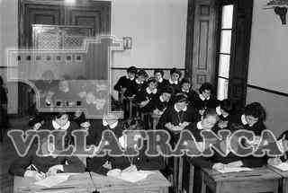 Grupos del colegio de Concepcionistas. Niñas con uniforme en clase