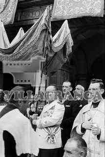 Procesión Corpus Christi Plaza Mayor. Servando Fernández Victorio y José Carazo sujetan el palio