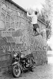 Deportista saltando una tapia