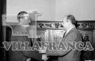 A la derecha el Delegado de Sindicatos en Burgos, José Solís. A la izquierda, el Alcalde Díaz Reig.