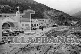 Inauguración del Túnel de Engaña. Iglesia y vías del tren que se dirigen hacia la boca del túnel.