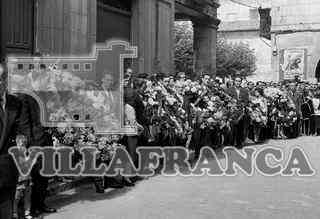 Entierro alcalde de Briviesca. Multitud en la calle con coronas de flores
