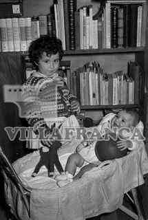 Domicilio Aparicio Ruiz.Niña con bebé en cuna.