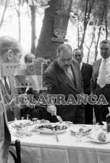 Peñas y autoridades en las Barracas en las Fiestas de San Pedro. El alcalde Mariano Jaquotot.
