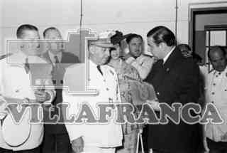Franco en la inauguración de la Fábrica de la Moneda y Timbre. A su izquierda, Tangil y Angulo.