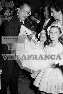 La señora de Franco, Carmen Polo, en la Tómbola con sus nietas y el Alcalde Mariano Jaquotot