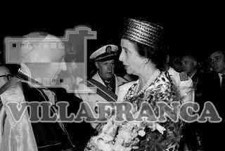 LLegada del Caudillo. Arzobispo Pérez Platero recibiendo flores. De fondo presencia del Gobernador