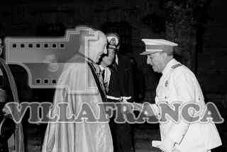 LLegada del Caudillo. Recibimiento. Franco y autoridades políticas y religiosas.