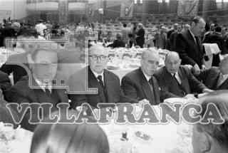 Banquete-homenaje al Gobernador Civil Posada Cacho. José María Codón (primero por la izquierda). Frontón de la deportiva militar Formato: 35 Milimetros