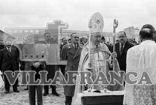 Inauguración de casas de Gamonal.Multitud de gente.Servando Fernández y otras figuras politicas y r
