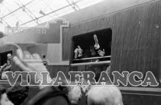 Peregrinación de enfermos a Lourdes, el Arzobispo Luciano Pérez Platero en tren