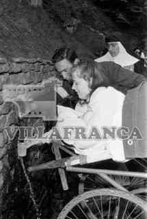 Peregrinos burgaleses en Lourdes, Francia. Niña recogiendo agua