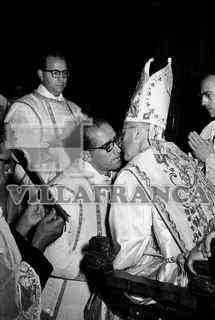 Ordenación en Oña. Arzobispo besando al cura.