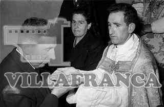 Cantamisa en Cueva de Juarro. Hombre besando a cura.