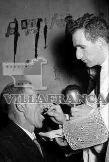 Cantamisa en Cueva de Juarro. Cura ofrenciendo ostia.