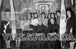 Primera misa en Gamonal.Señoritas posando junto curas.
