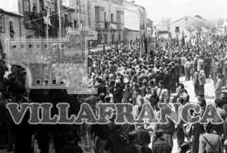 Muchedumbre ante la visita de Fernández-Cuesta y Merelo, Ministro de Justicia, a la provincia.