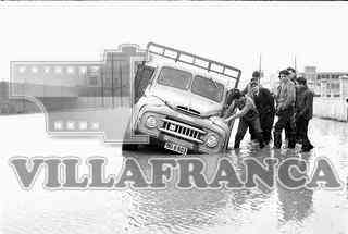 Inundaciones. Camión atascado. Jóvenes empujando.