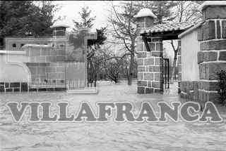 Inundaciones. Verja abierta de una finca inundada.