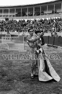 Novillada. Torero saludando con oreja.