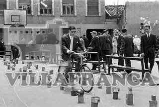 Fiesta de antiguos alumnos del Liceo Castilla. Hombre en bicicleta durante juego