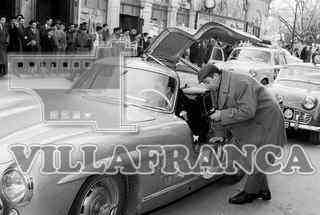 Rally de Montecarlo en el Paseo del Espolón. Hombre con su coche