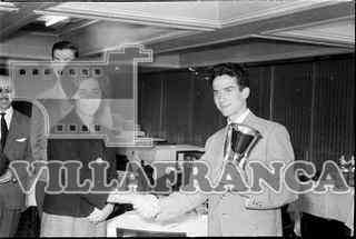 Entrega de trofeos a periodistas tras una prueba de tiro.