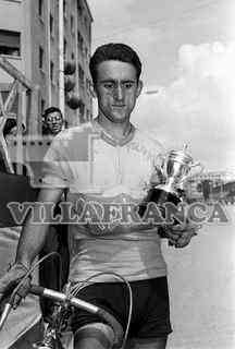 Carrera, vuelta ciclista Palencia, ganador con copa en Avenida de El Cid