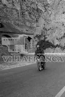 Tercera carrera motorista a Burgos. Motorista recorriendo carretera.Vista puente.