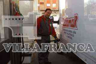 Gasolinera. Empleado cargando depósito de camión.