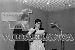 Entrega de premios en Radio Popular. Pareja leyendo en la radio.