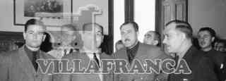 El Delegado de Sindicatos en Burgos, José Solís, acompañado del gobernador Posada Cacho.