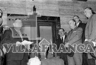 Inauguración del edificio Feygón. En el portal Servando Fernández, Gobernador Civil, y Mariano Jaqu