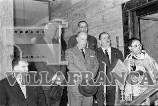 Inauguración y bendición del edificio Feygón. En el portal, el sacerdote preside el acto con Servan