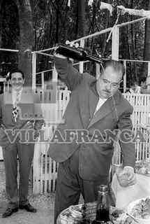 Concurso del Buen Yantar. Alcalde Mariano Jaquotot escanciando sidra.