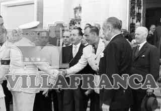 Inauguración Fábrica de la Moneda y Timbre. Franco saluda a Cobos, Carbonell y Villaverde.