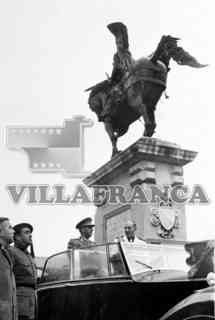 Franco en el coche oficial junto a la Estatua del Cid