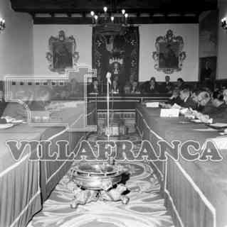 Acto en el Palacio de Saldañuela presidida por el gobernador civil Fernández-Victorio y Camps.