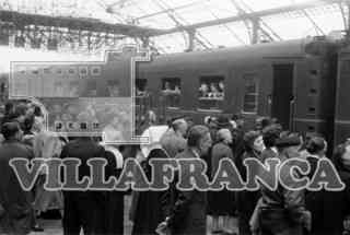 Peregrinación de enfermos a Lourdes, salida de la estación de trenes