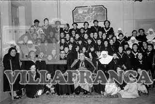 Madres Mercedarias y el Obispo durante su visita al asilo de las Mercedes