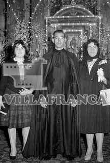 Primera misa en Gamonal.Cura junto a señoritas.