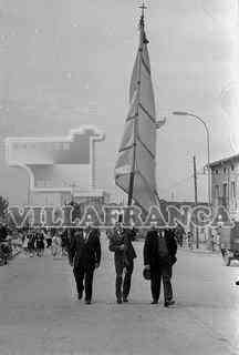 Primera misa en Gamonal. Procesión.Hombre sujertando pendón.