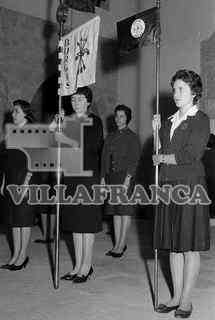Fiesta de la Sección Femenina. Señoritas con banderines.