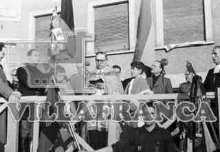 Soberón, el General Yagüe y Fernández Cuesta, entre otros, durante el acto en el Liceo Castilla.