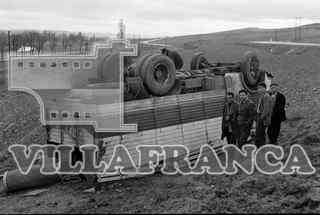 Hombres junto a un coche volcado en un accidente ocurrido en la carretera Valladolid