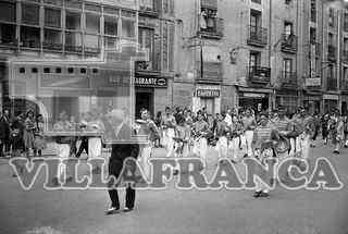 Charlotada de Peñas a su paso por la Calle Madrid. Desfile de músicos