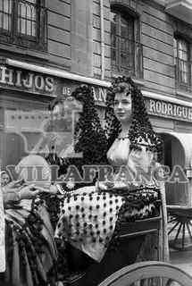 Charlotada de Peñas. Mujeres con traje goyesco en carro